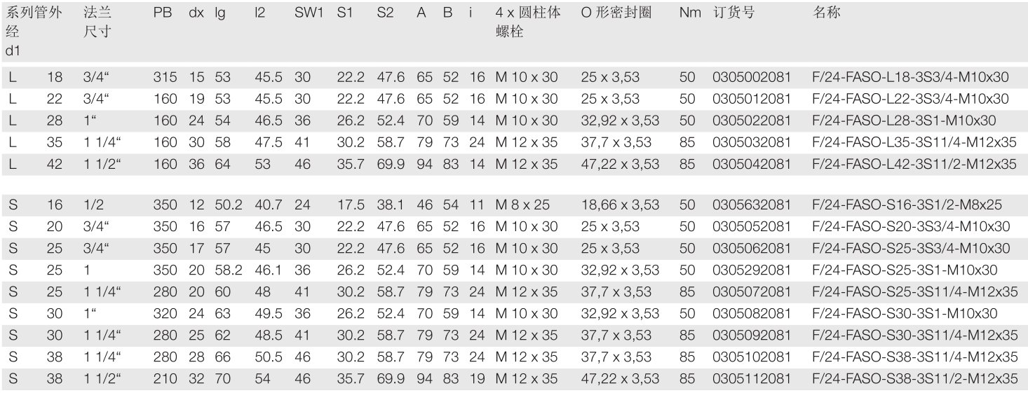 带卡套连接和分体式SAE法兰的布孔图,按照SAEJ 518 C/ISO 6162的标准系列(3000 psi)O形密封圈的默认材料是丁腈橡胶