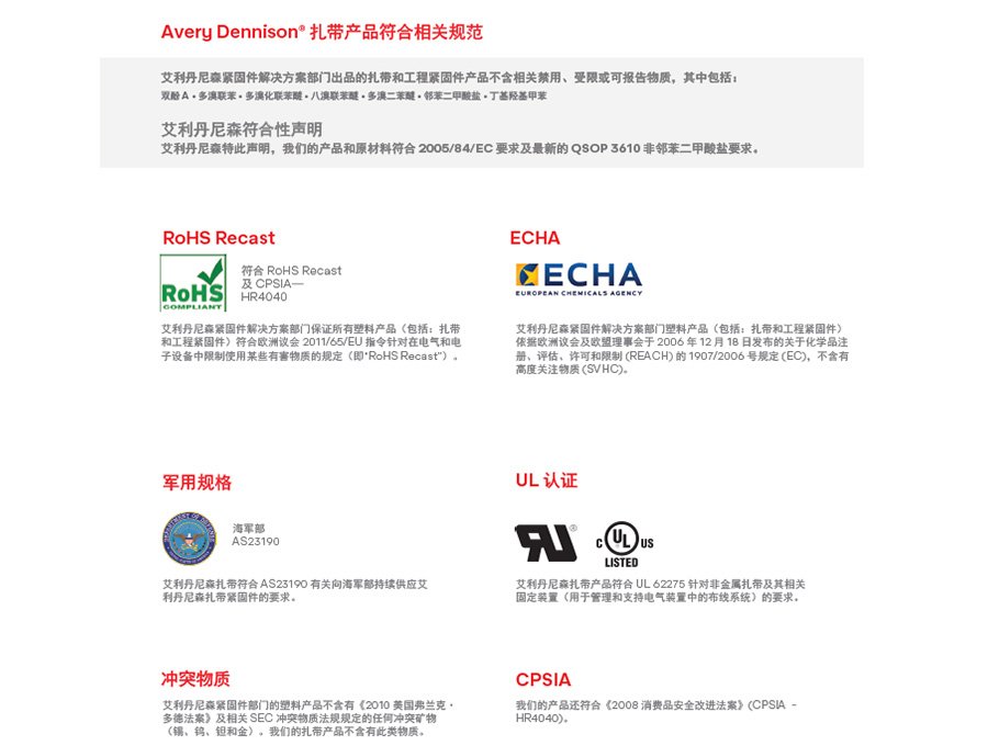 Avery Dennison®扎带产品符合相关规范