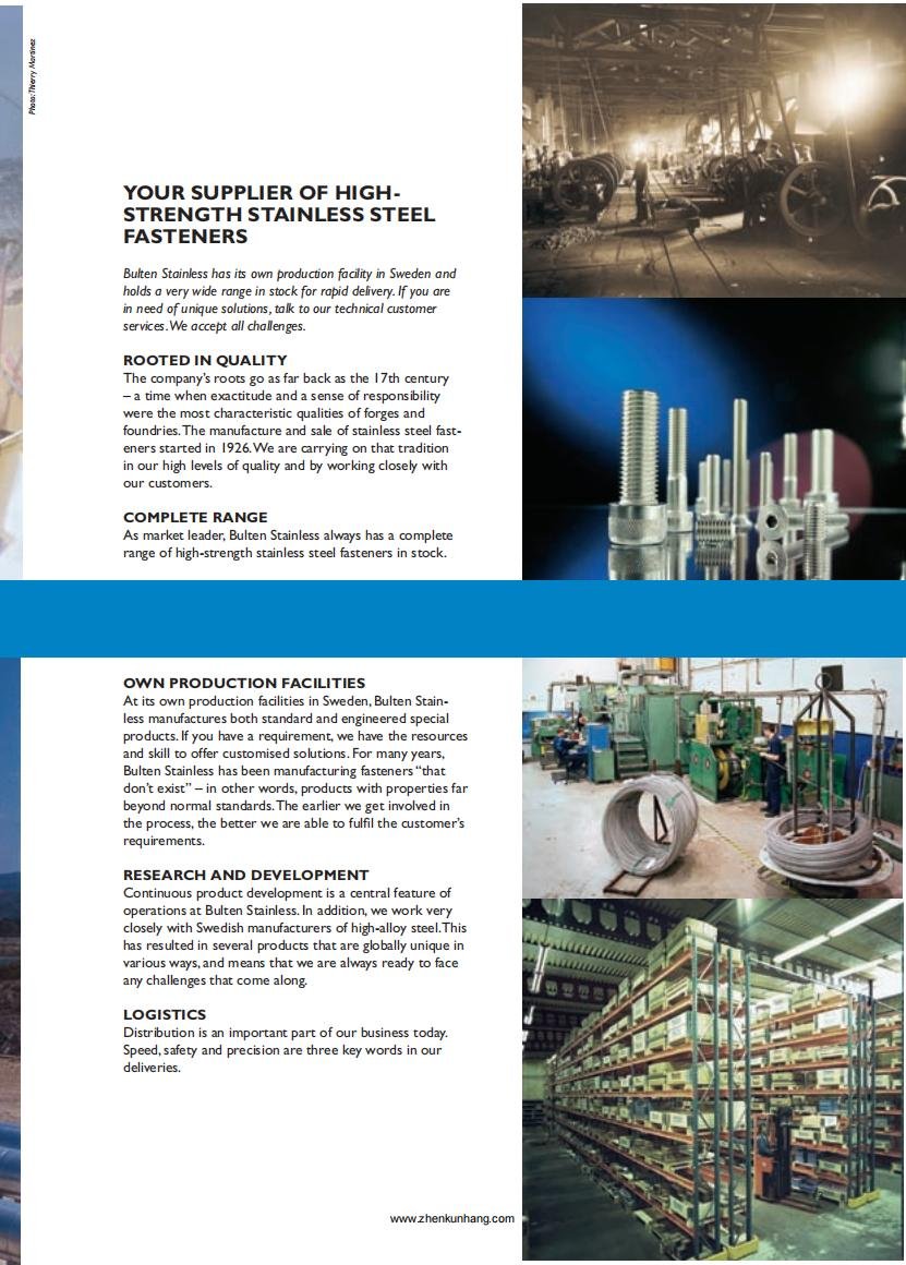 At its own production facilities in Sweden, Bulten Stain-      less manufactures both standard and engineered special      products. If you have a requirement, we have the resources and skill to offer customised solutions. For many years,