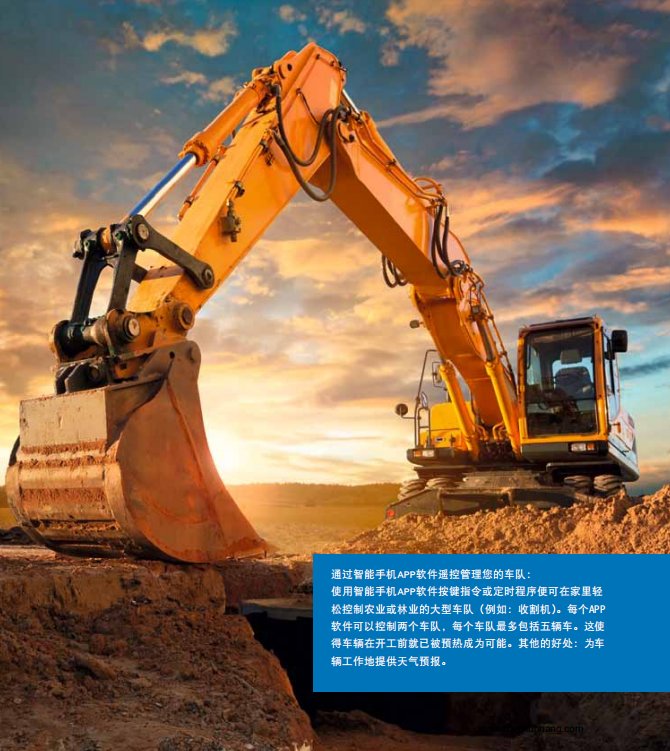 安全,高效和舒适的工作: 车窗上的冰霜能及时融化,并不再出现。驾驶员从此不必再 费力除霜,也不必再担心恶劣视野可能造成的危险,即使在 静止的车辆中工作也非常惬意。此外,等待的时候也不会再 冻得瑟瑟发抖 — 减少因寒冷导致的停机作业时间。可通过不 同的控制元件简单、轻松的对加热器进行控制。