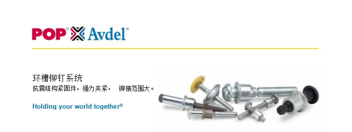 不可行时的理想解决方法。多年来, 我们的环槽铆钉系统已经被广泛应用于全球各地各种高要求的机械工业,包括车身制