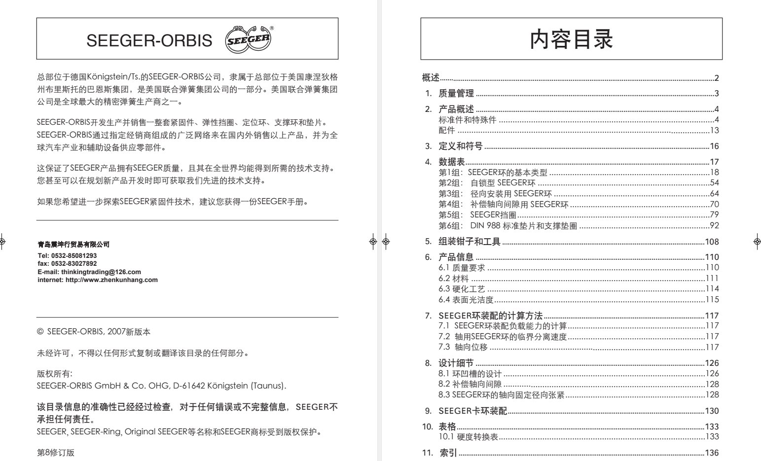 SEEGER标准件范围与SEEGER价格列表中所列的产品范围相一致。