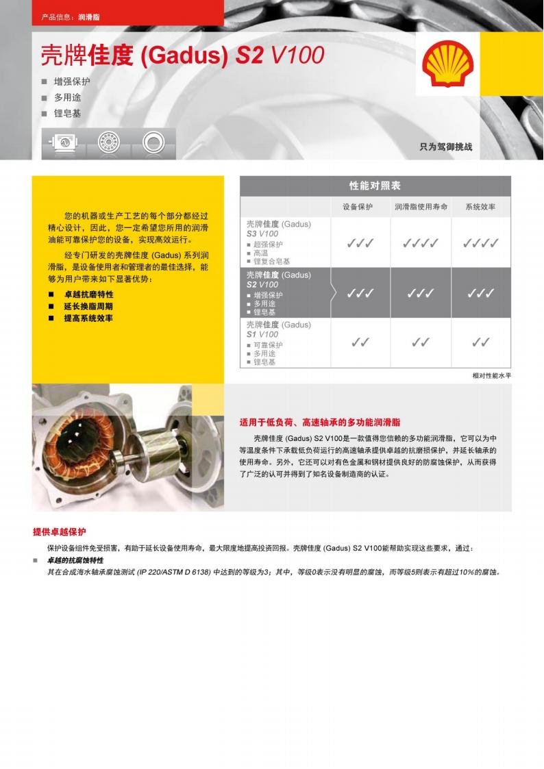 保护设备组件免受损害。有助干延长设备使用寿命。提高投资回报。壳理佳度(Gadus)S2V100能帮助实现这些要求。 通过∶